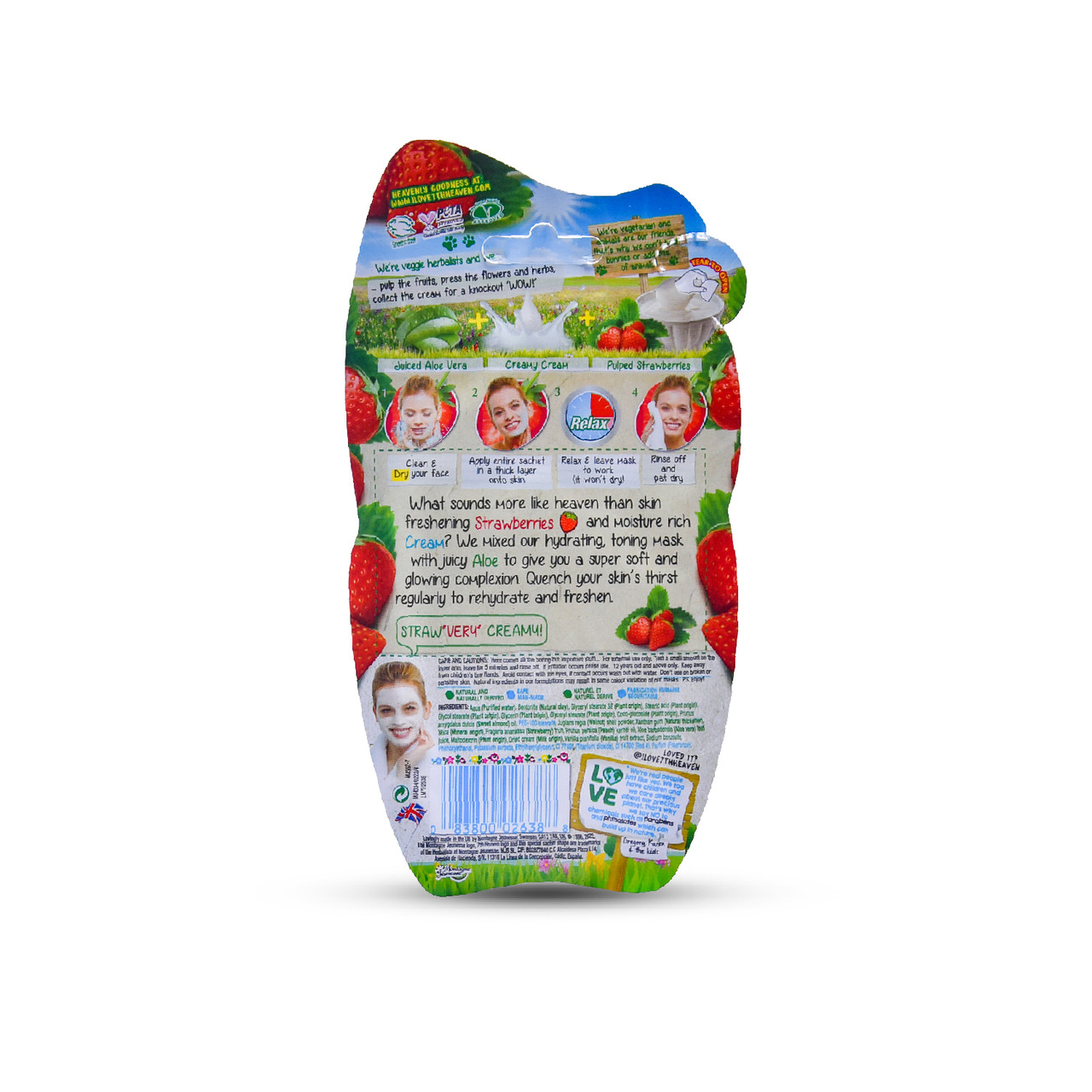 What sounds more like heaven than skin freshening Strawberries and moisture rich Cream? We mixed our hydrating toning mask with juicy Aloe to give you a super soft and glowing complexion. Quench your skin’s thirst regularly to rehydrated and freshen.